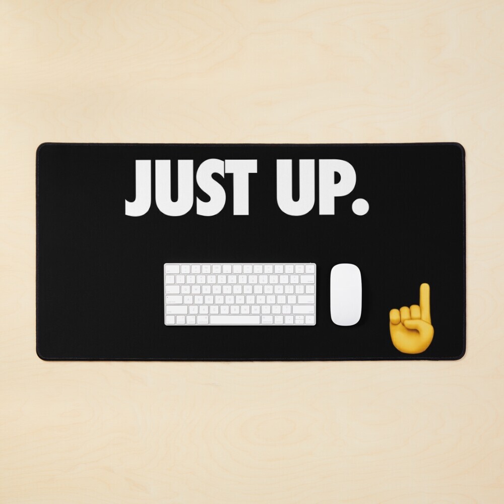 Elevate your gaming setup with the "Just Up" Gaming Desk Mat. Designed for gamers who aim high, this desk mat features a sleek, minimalist design with the inspiring "Just Up" message. Its smooth surface ensures precise mouse movements, while the non-slip base keeps it securely in place during intense gaming sessions. Durable and easy to clean, this desk mat is perfect for adding a touch of motivation and style to your gaming station. Get ready to level up.